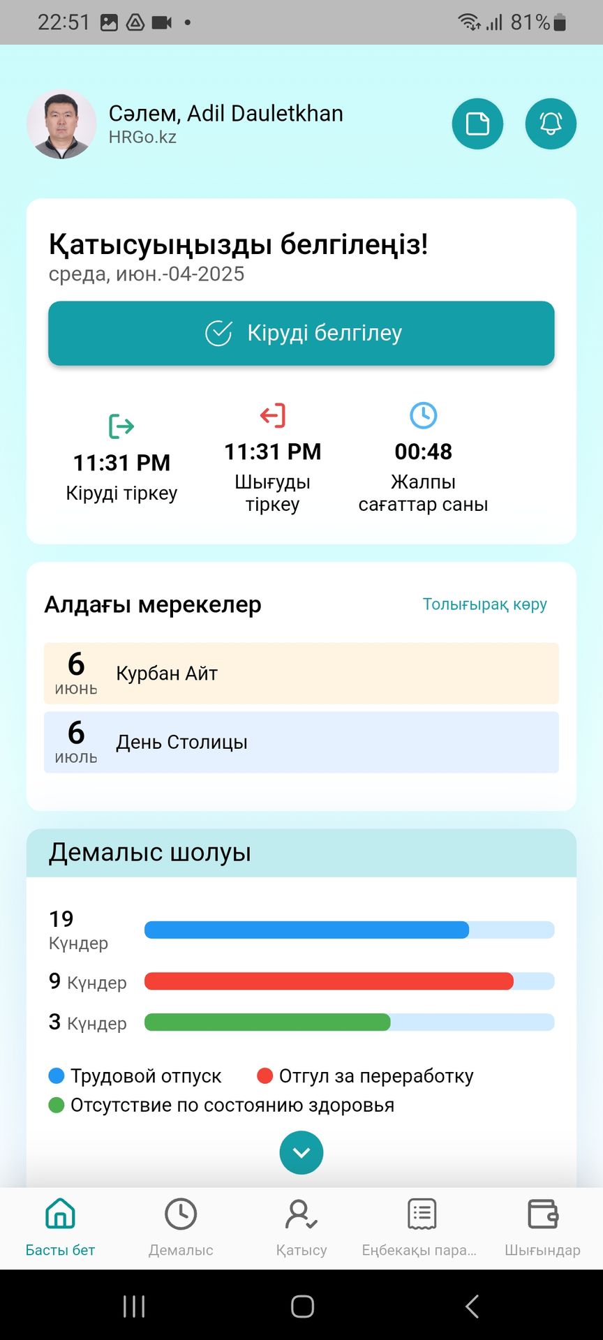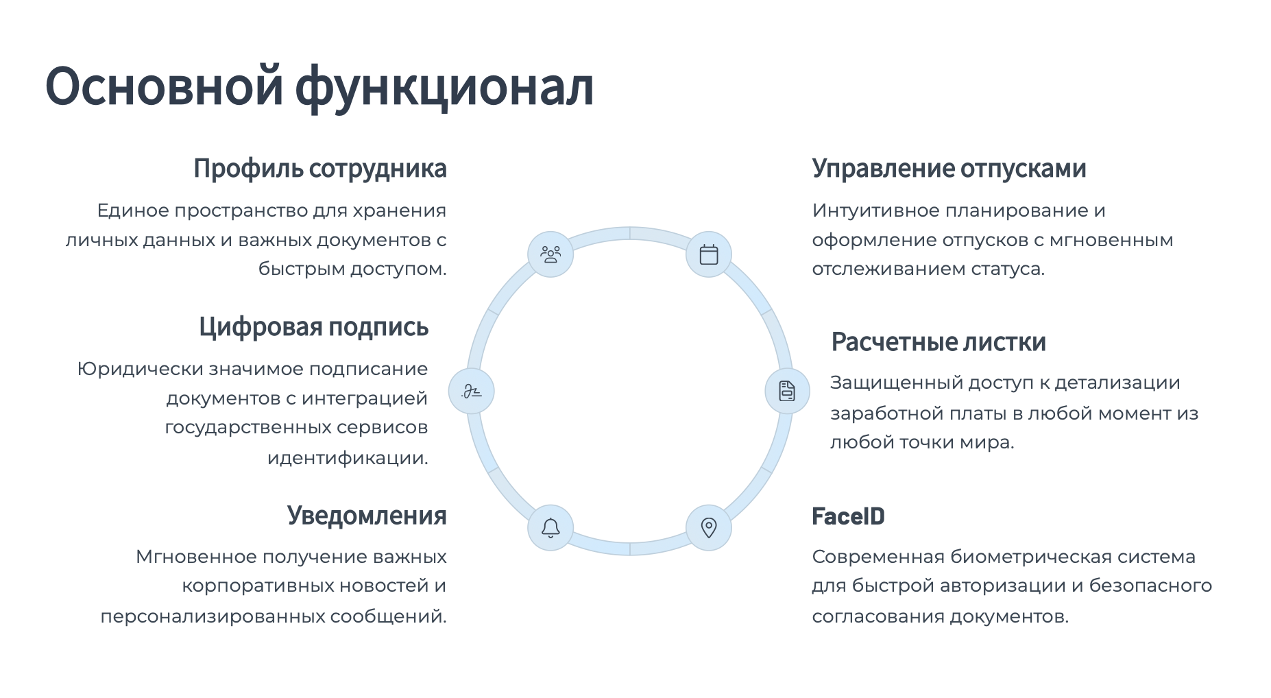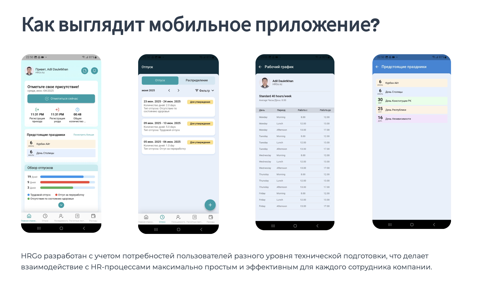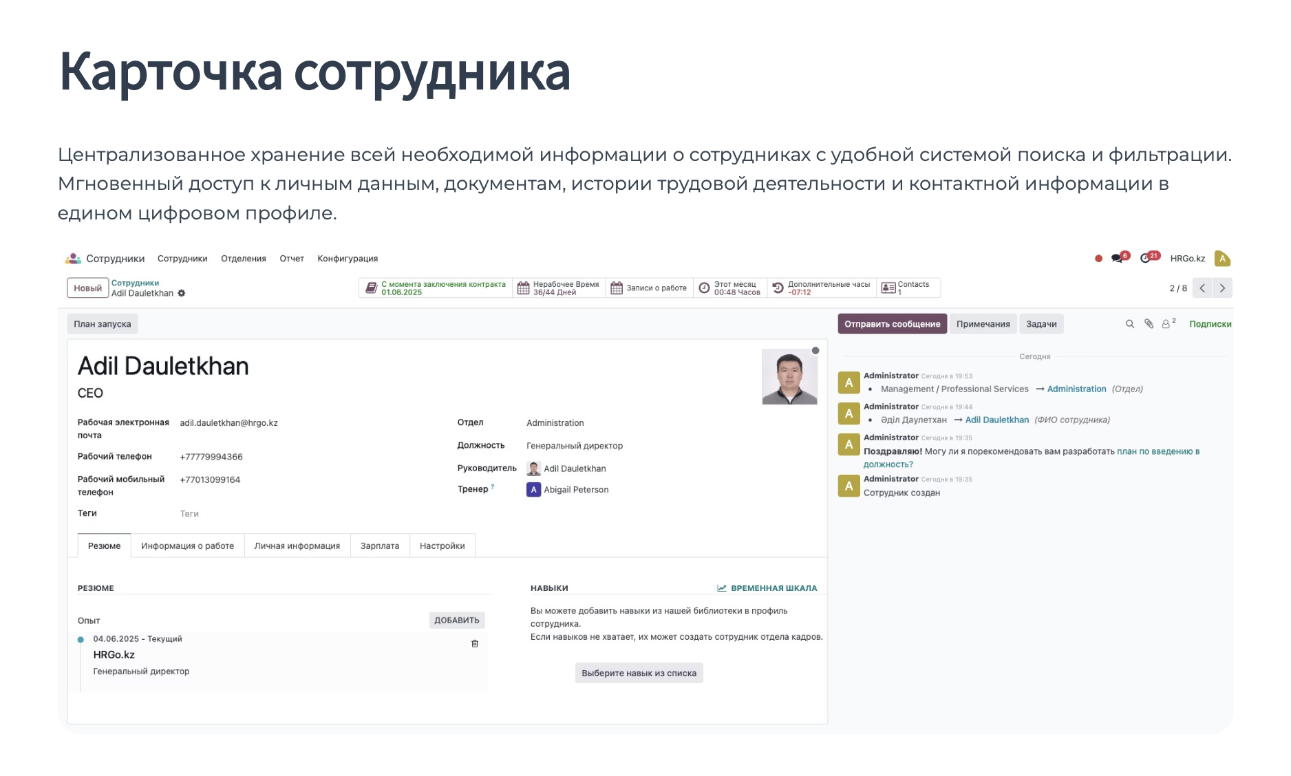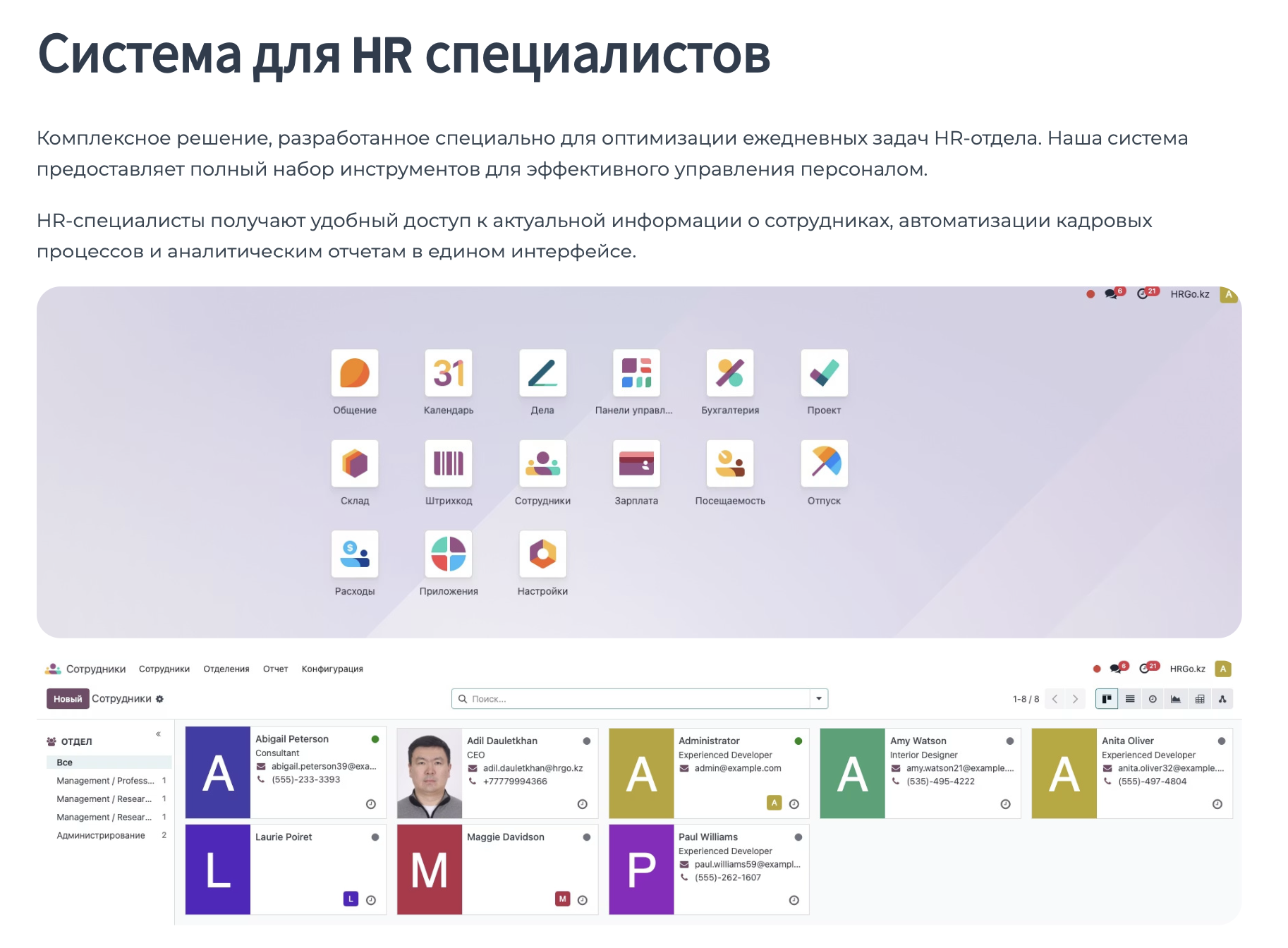 Функционирует совместно с комплексной ERP системой для HR департамента.